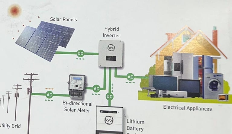 Generate your own clean energy, sync with your existing grid connection & Sell excess power back to the grid and store energy for power cuts and at night usage.