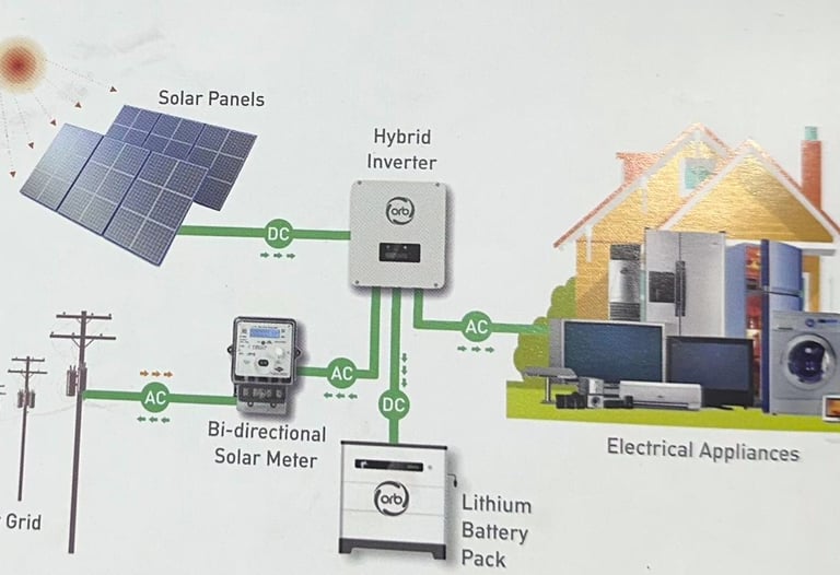 Generate your own clean energy, sync with your existing grid connection & Sell excess power back to the grid and store energy for power cuts and at night usage.